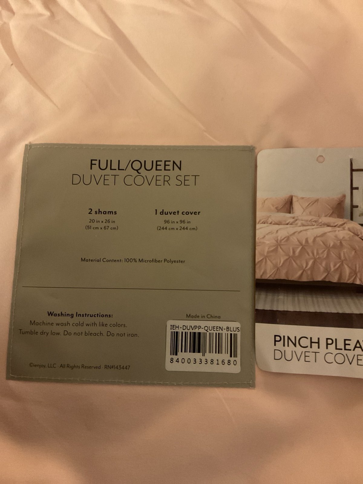 Queen size pinch- pleat duvet cover with 2 shams