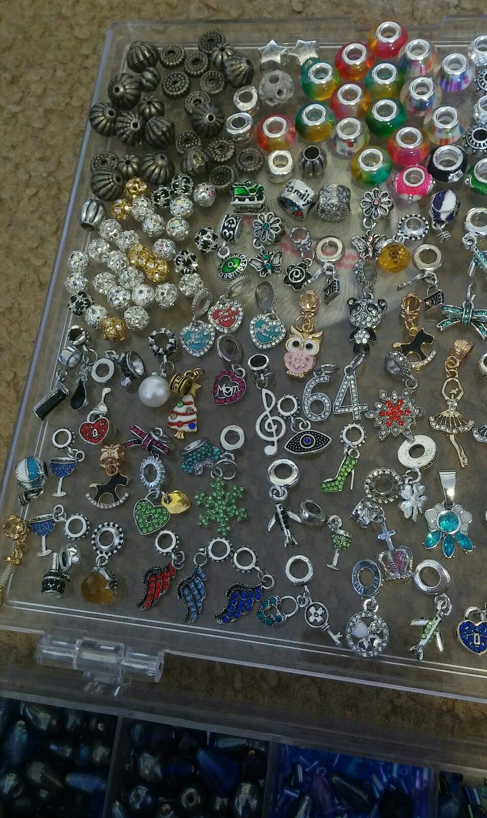 280 "fancier" charms & beads of all kinds, + hundreds of regular craft style beads in every style imaginable + earring hooks for creating earrings!
